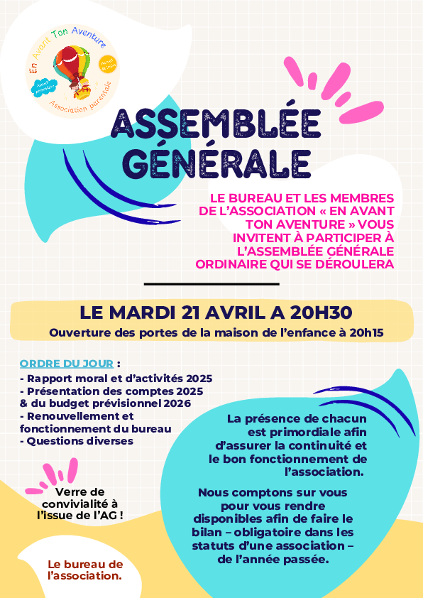 L'assemblée générale de l'association se tiendra le 21 avril 2026 à 20h30. On compte sur votre prése ...